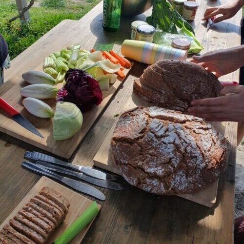 Eine Jause haben wir uns jetzt redlich verdient! Wir bringen eine vielfältige Jause für alle mit und kommen beim gemeinsamen Essen ins Reden.